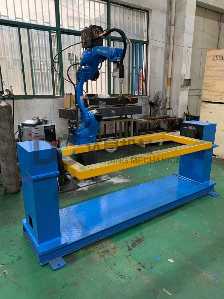 機械手焊接變位機在焊接生產中越來越得到廣泛的應用,加上與機器人的配合作業便更加成為了焊接生產的自動化!而機械手焊接變位機則是在普通焊接翻轉機的基礎上作了更加合理的優化設計,主梁與橫梁都釆用了孔系組合設計,工裝夾具部份更是標準模塊化設計,互換性強。