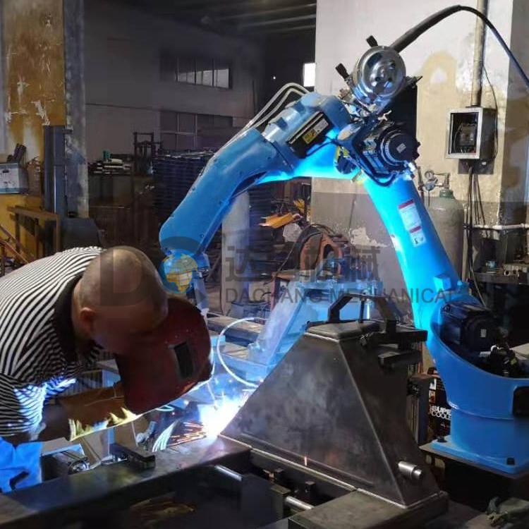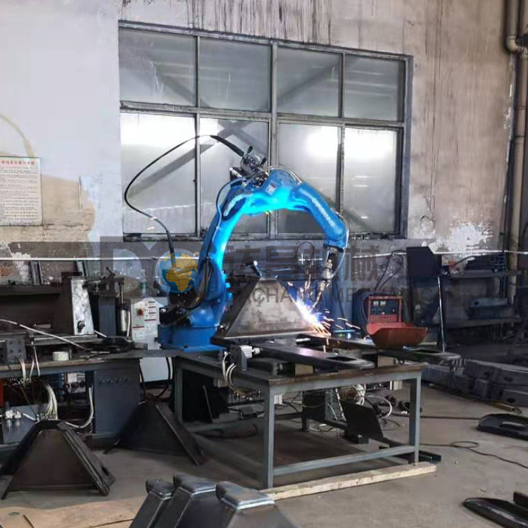 焊接機器人的用途以及優勢:用機械手不僅可以提高產品質量,更可以節省人工,提高生產效率,而且在有些人不能使用人工的作業環境下工業機器人就能幫作業。