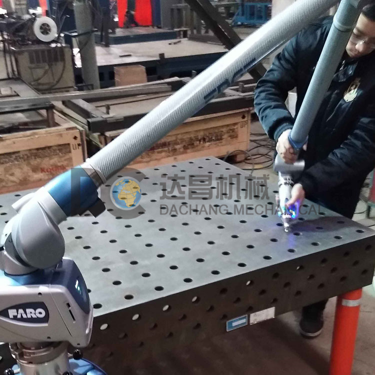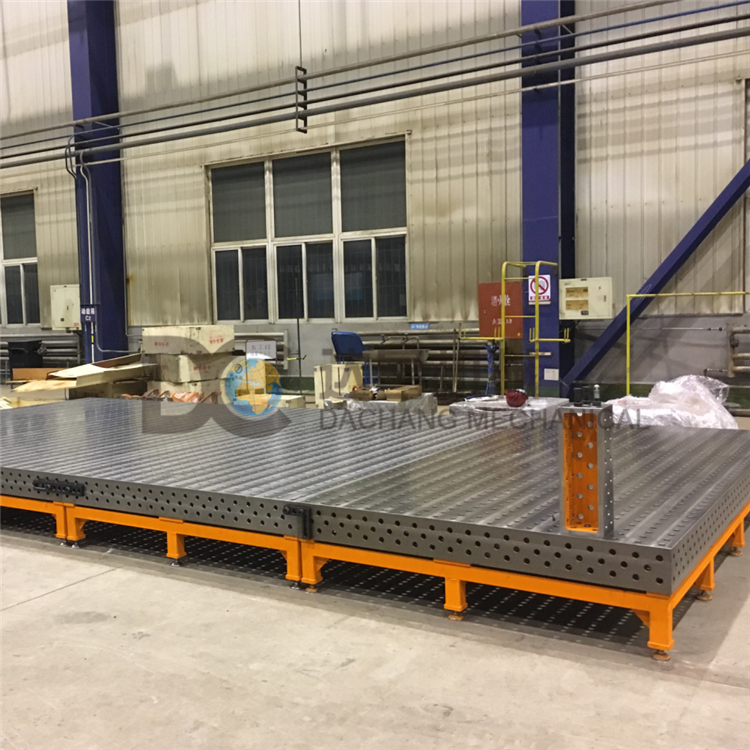 2、柔性化:多孔焊接平臺的承載能力高,鋼性穩(wěn)定,它的五個面均加工有規(guī)則的孔,并刻有網(wǎng)線。焊接平臺可方便地延伸和擴展,組合。經(jīng)擴展的標(biāo)準(zhǔn)臺面可模塊化的定位和夾緊直接連接在一起。在安裝、調(diào)整和定位工件過程將柔性三維組合焊接工裝系統(tǒng)的通用功能展示出來,尤其在了大型工件方面的應(yīng)用上。